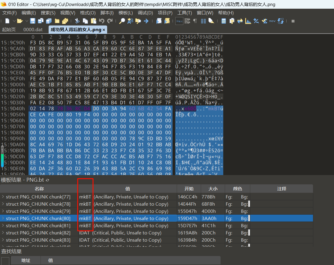 然后去仔细看了一下里面的数据块内容,发现有一大坨 mkBT 类型的非 PNG 常规数据块(前面还有一点 prVW、mkBF、mkTS、mkBS 这些)