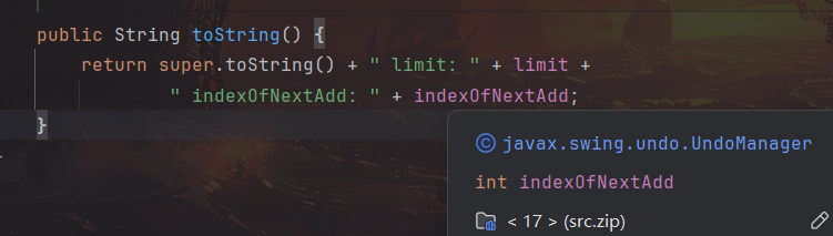 查看 UndoManager 的 toString 方法,limit 与 indexOfNextAdd 均为 int 类型没有利用价值
